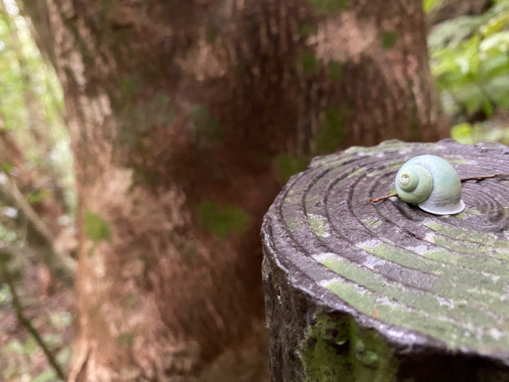 遊歩道を歩いていて、みつけたのは「アオミオカタニシ」でした。