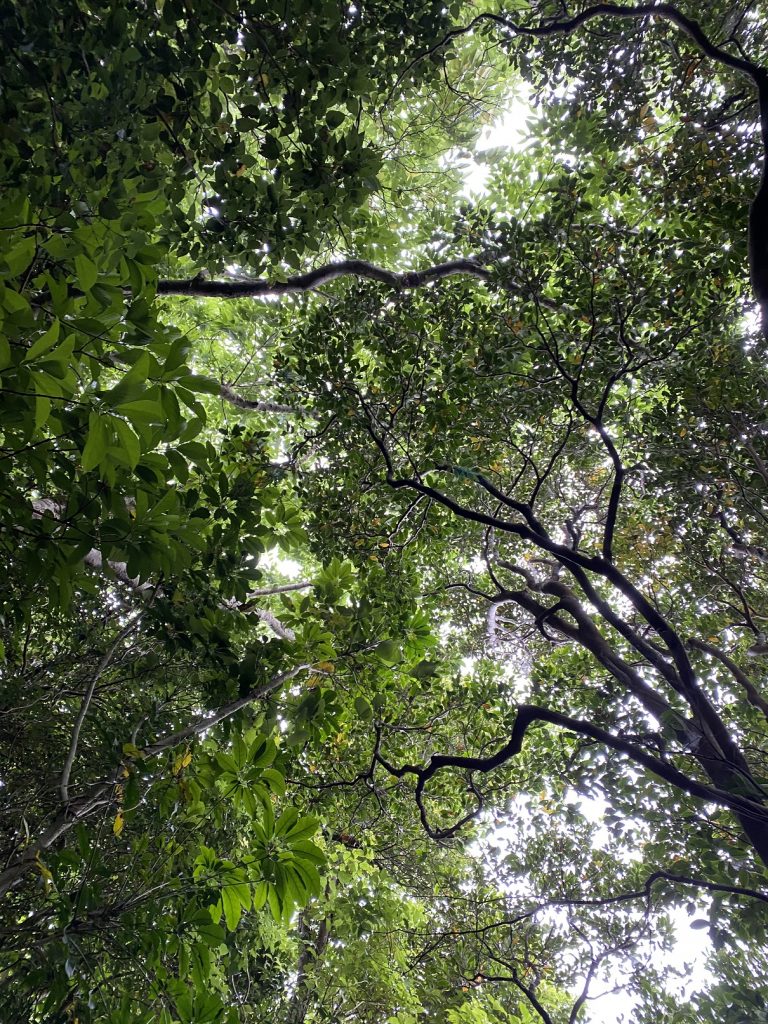 せっかくなので空を見上げると、いちめん緑色です。