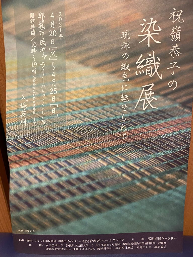 那覇市民ギャラリーでおこなわれている「祝嶺恭子の染織展」に行ってきました。