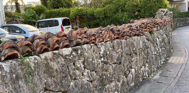 琉球石灰岩を加工して作った石垣は、上の部分が丸みを帯びていて、