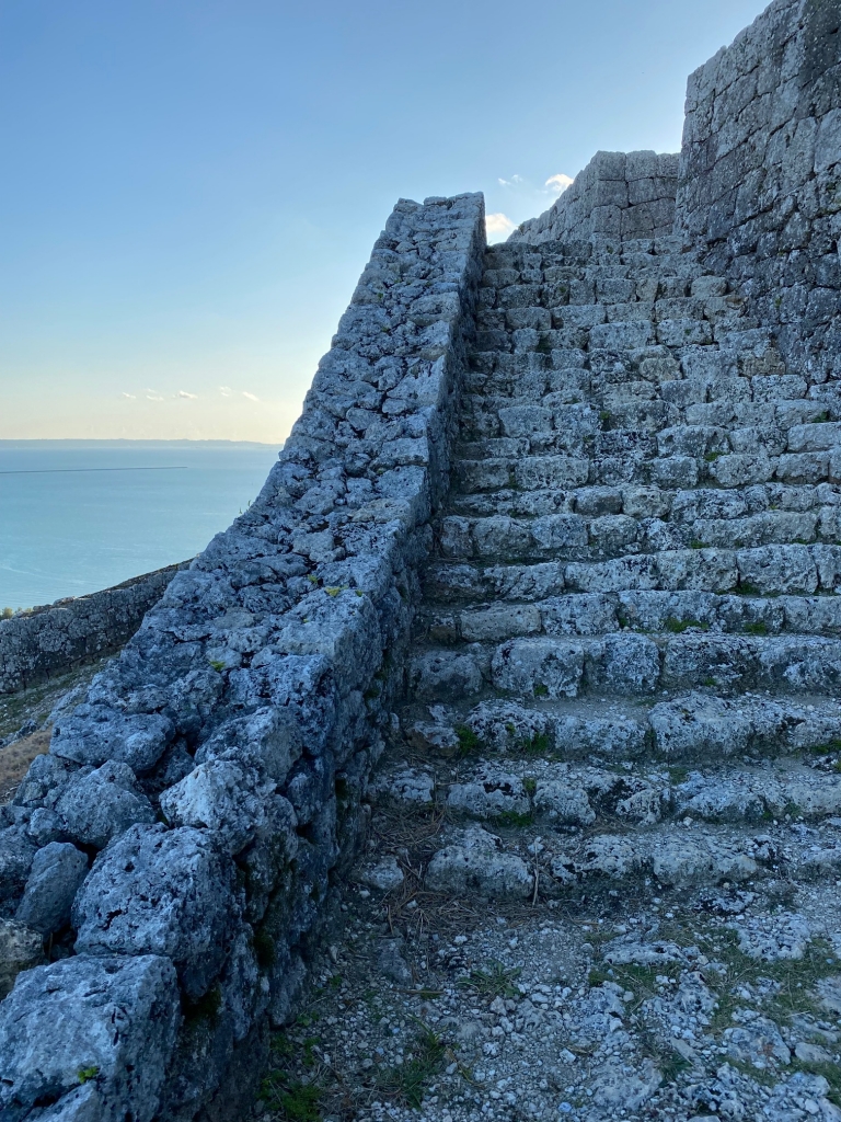 この勝連城跡、何年か前は城跡近くまで車で上がって行けたんです。