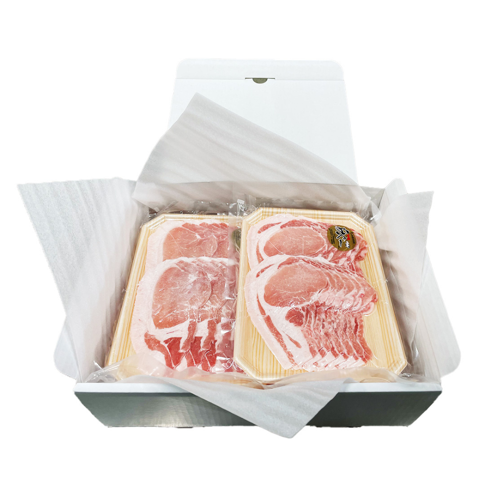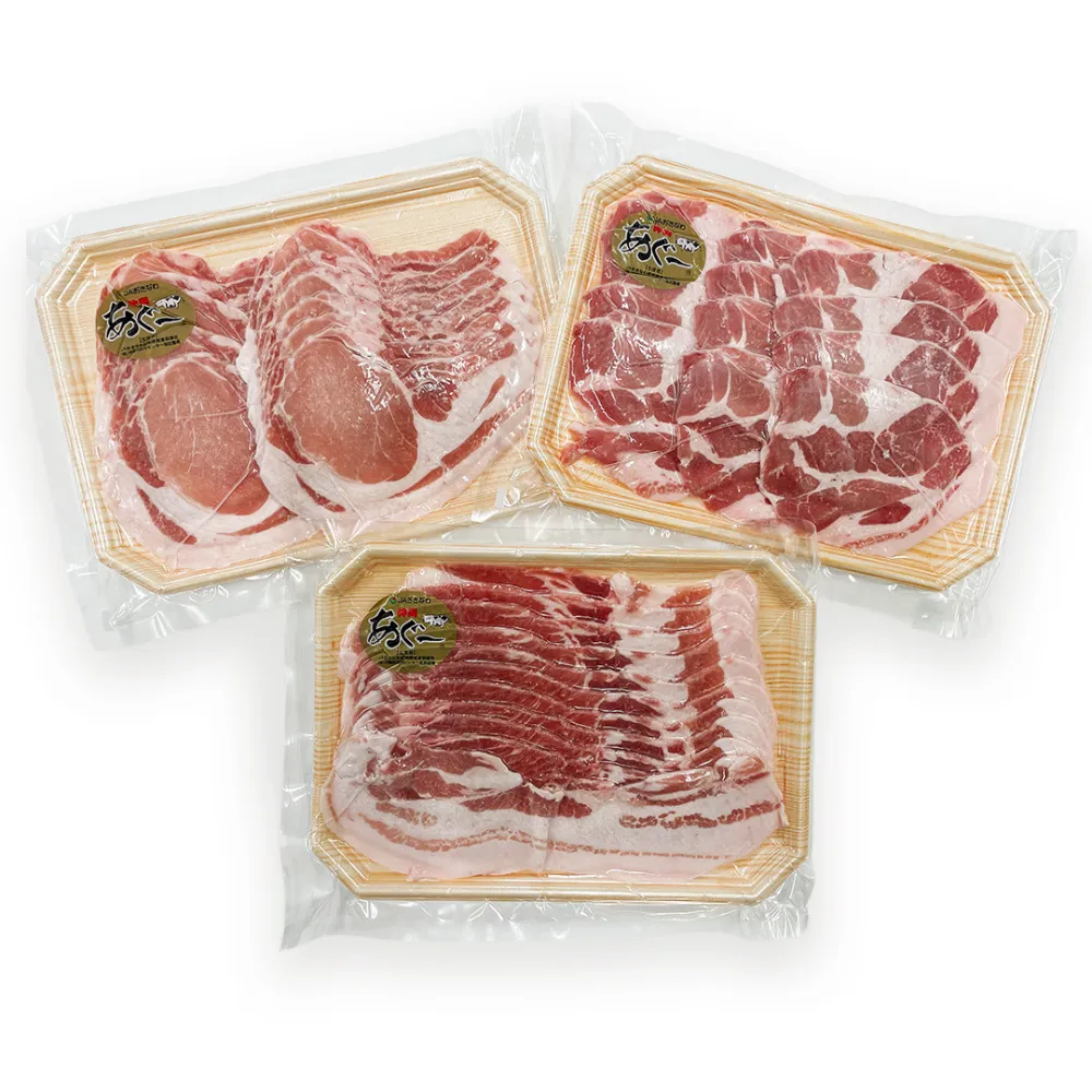 「あぐー食べ比べしゃぶしゃぶ4種類セット」はバラ、ロース、肩ロースに加え、モモのヘルシーな味わいもプラスした4種類の豪華な組み合わせです。