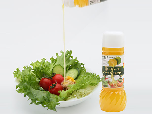シークヮーサーノンオイルドレッシング:シークヮーサー果汁、醸造酢、糖類(水あめ、砂糖)、食塩、唐辛子エキス、風味原料(かつお粉末、かつおエキス)、