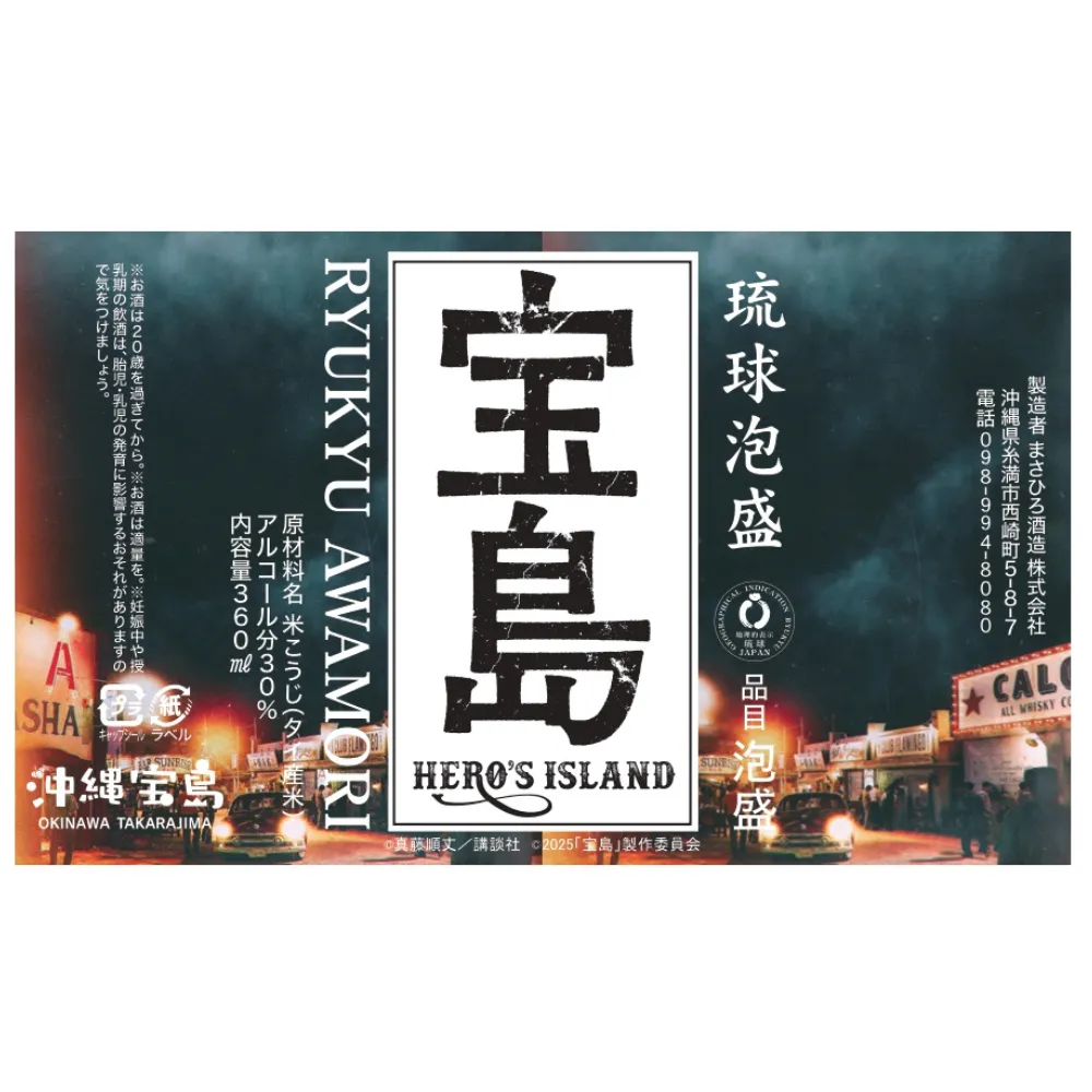沖縄を代表するまさひろ酒造の泡盛に、映画タイトルと沖縄の力強い意匠をあしらい、作品の世界観を表現した特別ラベル仕様。華やかな香りとすっきりキレのある味わいでストレートでもカクテルベースでも楽しめます。